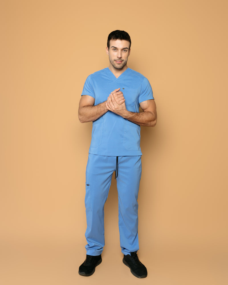 El scrub Maxi está diseñado con tejido tecnológico de alta calidad, pensado para brindar comodidad y funcionalidad.